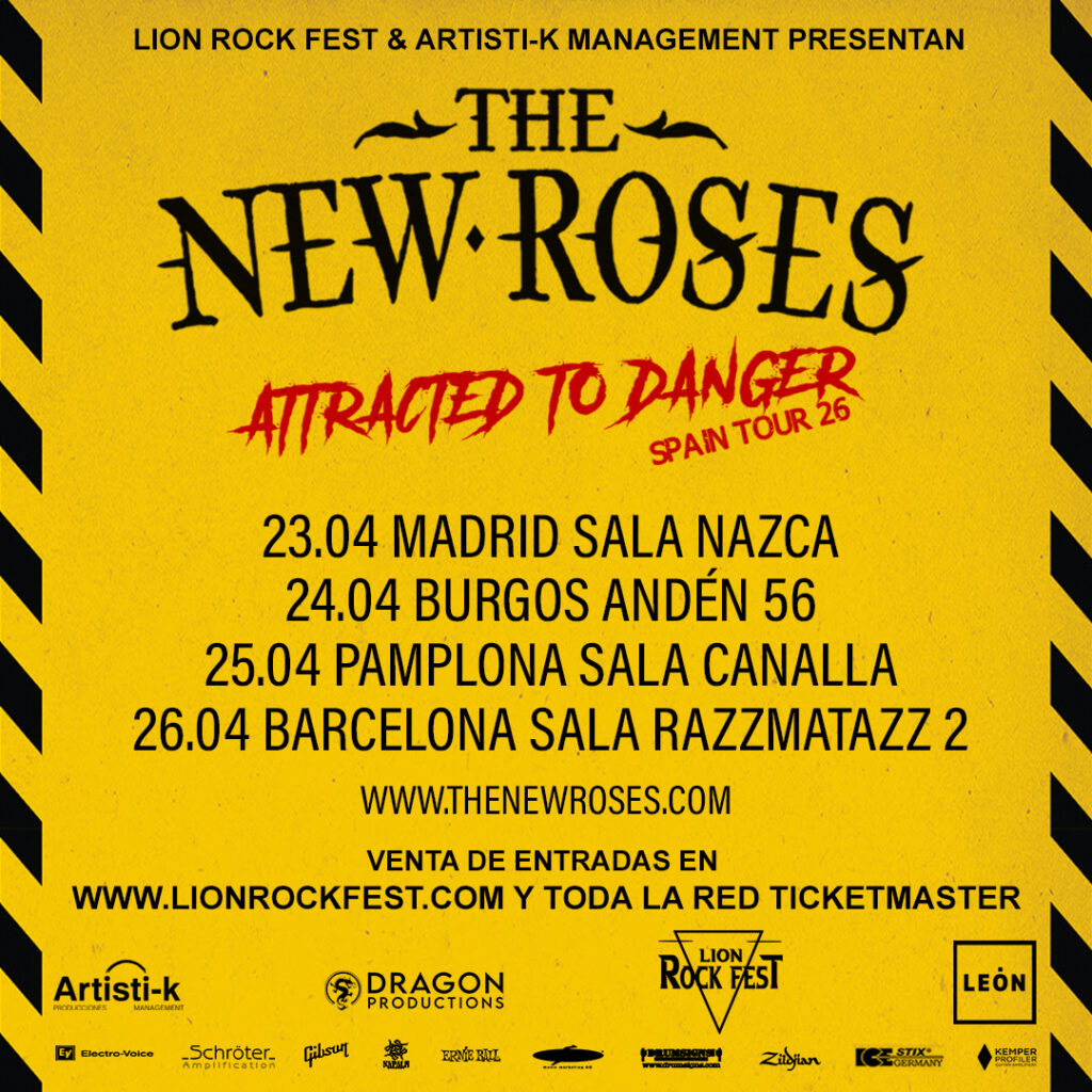 Las entradas para los conciertos de THE NEW ROSES en España ya pueden adquirirse en www.lionrockfest.com y en toda la red Ticketmaster. Cuatro citas consecutivas que prometen convertirse en uno de los momentos destacados del hard rock en salas durante la primavera de 2026.