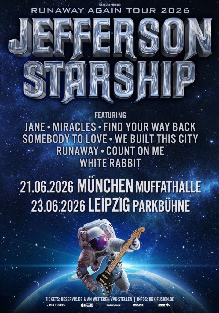 Jefferson Starship cumplen 50 años de historia… y en 2026 vuelan de nuevo hacia Europa. Y ojo: solo cuatro fechas confirmadas. Para los fans que llevan toda una vida soñando con verlos en directo, estamos ante una oportunidad muy especial. La banda apenas visita este lado del charco, así que esta mini-gira es, literalmente, un regalo para los que aman el rock setentero y ochentero con alma, legado y una colección de himnos que forman parte de la historia grande del género.
