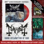 Para celebrar el 25º aniversario de esta obra maestra, MAYHEM lanzará una edición especial de «Grand Declaration Of War» el próximo 5 de diciembre. Esta joya para coleccionistas incluirá el máster original en un LP gatefold de color «sunburst», un nuevo empaque con «hot foil» plateado, un póster de doble cara y un parche de cuero bordado. Un auténtico tesoro para cualquier devoto de la legión oscura.
