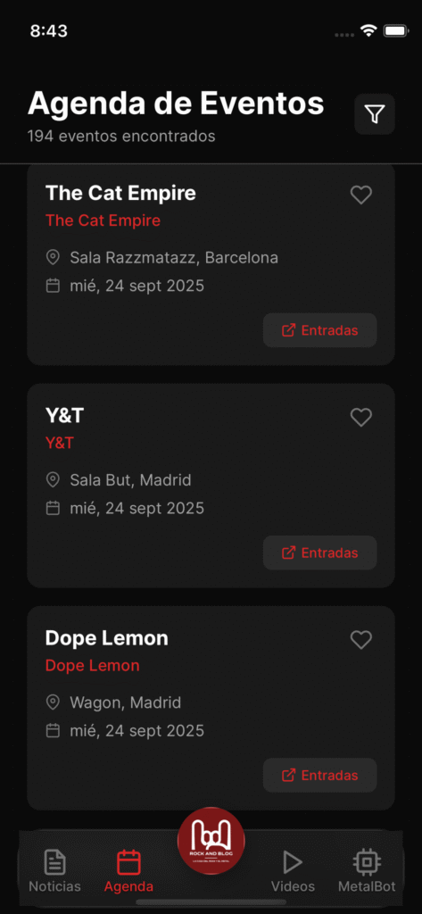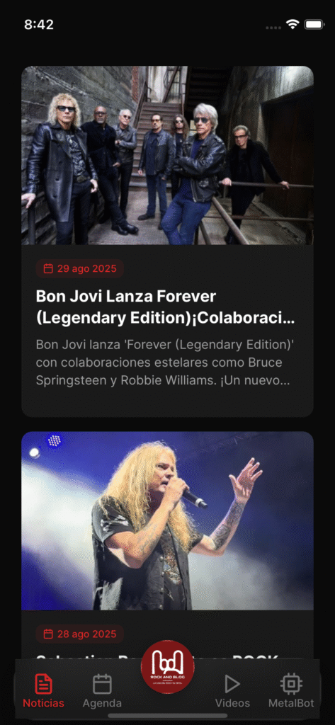Con RockForge tendrás en la palma de tu mano todo lo que necesitas para estar conectado con la escena rock y metal: noticias, vídeos, conciertos, un asistente de IA especializado y mucho más.