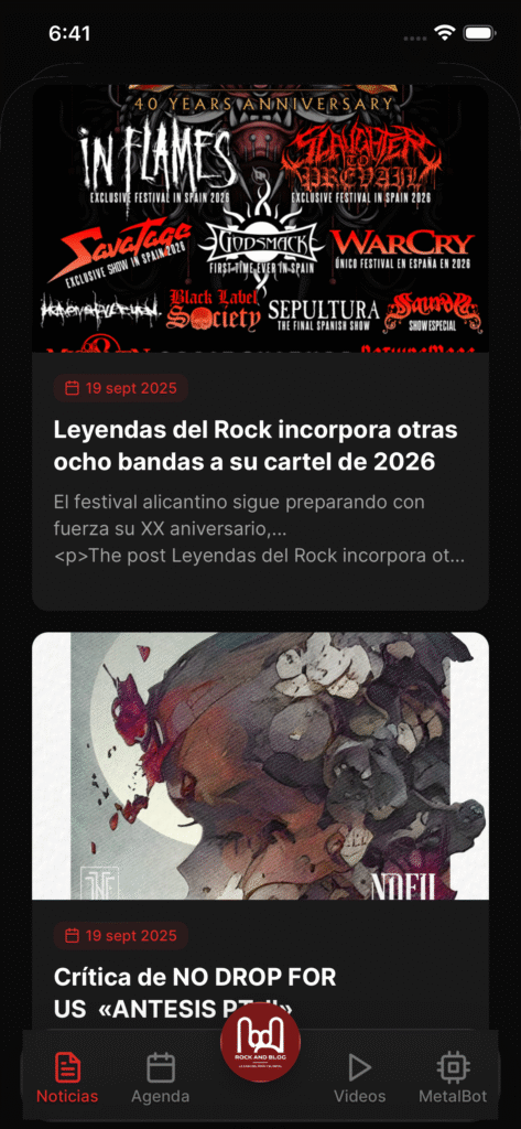 Después de meses de desarrollo y pruebas, nos complace anunciar el lanzamiento oficial de RockForge, la app de Rock and Blog que revolucionará la forma en que los fans del rock y el metal consumen contenido, descubren música y se conectan con su comunidad.